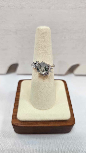 moldavite, herkimer, tektite in sterling ring
